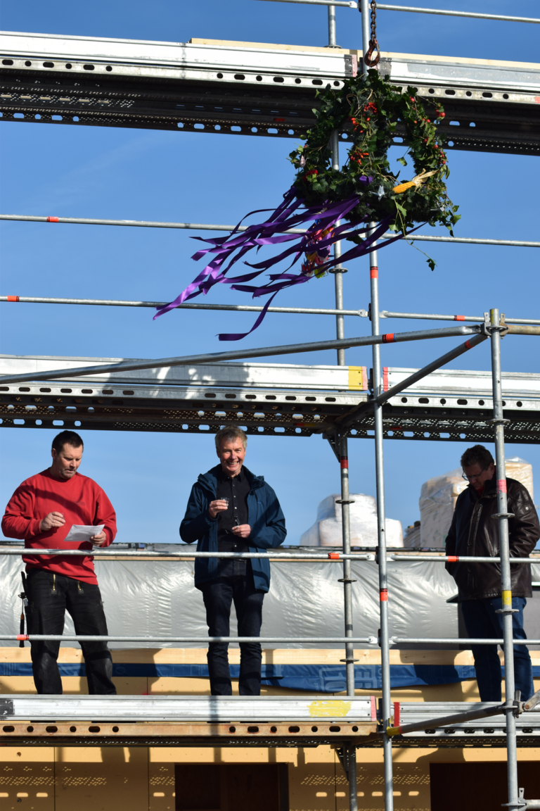 Den Richtspruch von Ulf Wienke (GF Hochbau und Denkmalpflege GmbH) hat der verant-wortliche Zimmermann Sven vorgetragen: